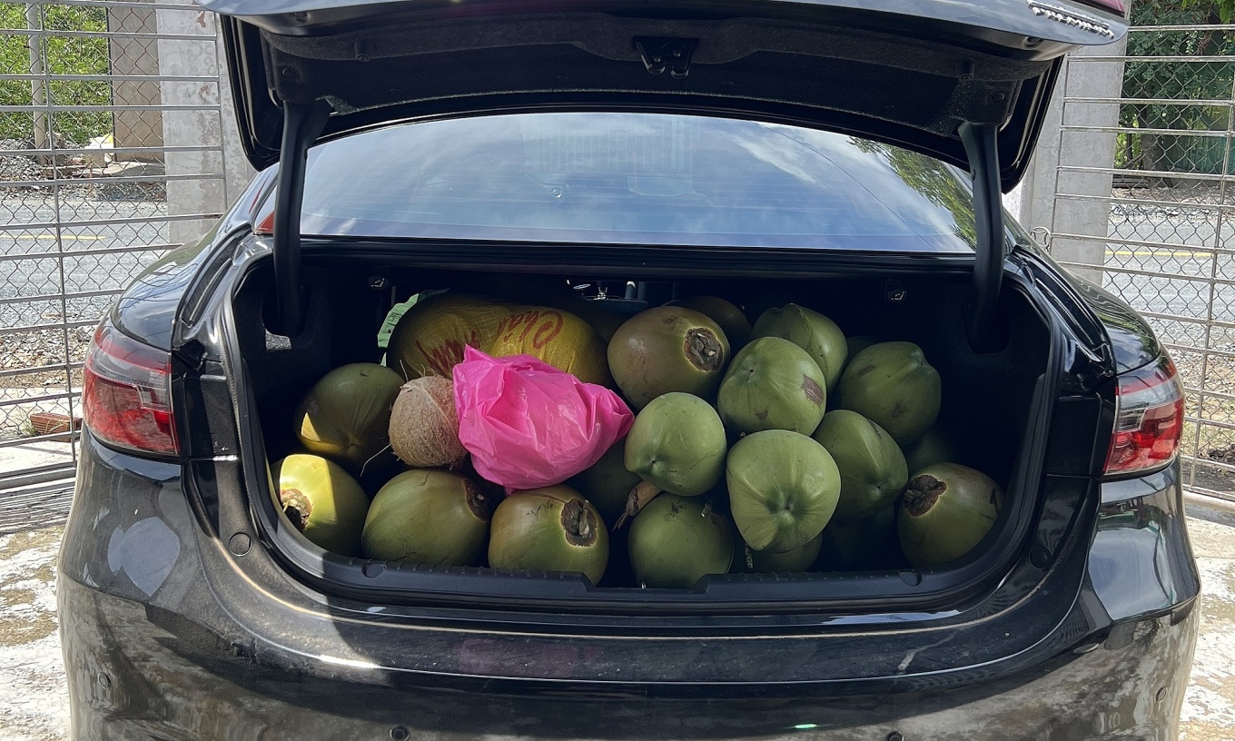 Tải nặng trên khoang hành lý của một mẫu sedan. Ảnh: Hồ Tân