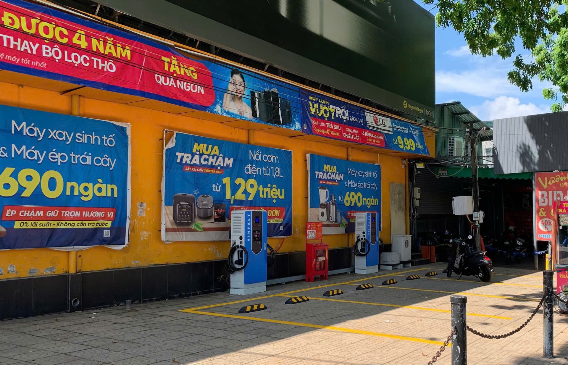 Hiện tại, nhiều điểm bán hàng thuộc hệ thống Thế Giới Di Động đã được tích hợp trạm sạc V-Green, sẵn sàng phục vụ các chủ sở hữu ô tô, xe máy điện VinFast. Theo kế hoạch, từ ngày 01/11/2025, hệ thống tủ đổi pin xe máy điện tại các cửa hàng thuộc chuỗi Thế Giới Di Động cũng sẽ chính thức đi vào hoạt động, phù hợp với kế hoạch kinh doanh các dòng xe máy điện đổi pin của VinFast.